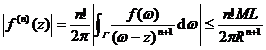 [ Cauchy's inequality ] If the function is analyzed in the area , continuous on the upper, and the shortest distance from the point to the boundary is , and the length is , then