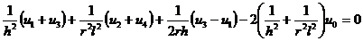 即任一节点(i,j)uij的值等于周围相邻节点上解的值的算术平均,这种形式的差分方程称为五点格式,在边界节点上取