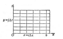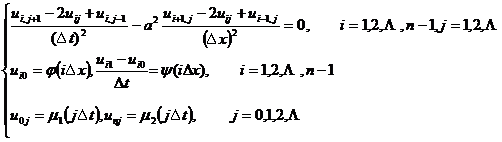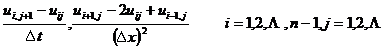 与上段一样,利用和在第0排及第1排的已知数值(初始条件)ui0 , ui1可计算ui2,然后用已知的ui1 , ui2可计算ui3,类似地可确定一切节点上的uij.