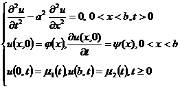 由此可按t增加的方向逐排求解.在第0排上ui0的值由初值(ix)确定,j+1ui,j+1的值可由第j排的三点(i+1,j),(i,j),(i1,j)上的值ui+1,j, uij,ui-1,j确定,而u0,j+1,un,j+1已由边界条件1((j+1)t)2((j+1)t)给定,于是可逐排计算一切节点上的uij.(x), 1(x)2(x)充分光滑,且时,差分方程收敛而且稳定.所以利用差分方程1计算时,必须使,即.