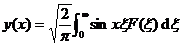 The function defined on the right side of the 2° equation ( 1 ) can be viewed as the Fourier sine transform of y(x) . If F(x) is segment-wise differentiable and exists when x > 0 , then equation ( 1 ) has a unique inversion formula:![]()