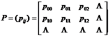 [ Transition probability matrix of Markov chain ] If the probability of the system going from state E i to state E j through a transition at time m is independent of time m , then p ij can be used to represent this transition probability. obviously