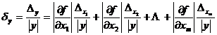 Suppose a function representing m independent variables , if the maximum absolute errors of the independent variables are respectively , then the maximum absolute error and the maximum relative error of the function y are respectively![]()
