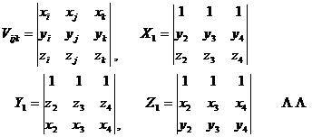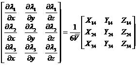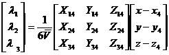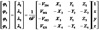 is the volume coordinates ( i = 1, 2, 3, 4 ), and the linear relationship between them and the rectangular coordinates is![]()