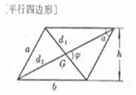 area The center of gravity G is at the intersection of the diagonals area center of gravity Moment of inertia The axis of rotation passes through the center of gravity and is parallel to the upper and lower bottoms ( Figure ( a )) When a =b ( parallelogram ) area