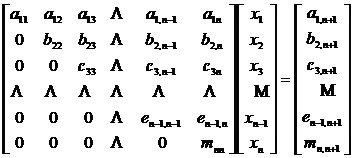 Note that whenever the main element is found here, the procedures such as row and row exchange and unknown order exchange are carried out. You can also put the steps of changing the order of unknowns after the n -1th step and do it together. You can also get the triangle's coefficient matrix .