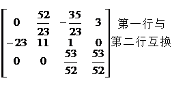 After doing this n times, the elimination process ends . The original coefficient matrix has been transformed into an upper triangular matrix (the order of the unknowns has been exchanged several times at this time) .![]()
