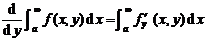[ Differentiation under the integral sign ] If f ( x , y ) is continuous in the bounded region R ( a ≤ x ≤ A , b ≤ y ≤ B ) , and there is a continuous partial derivative (x, y) , then when b < y < B ,![]()