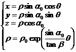 In the formula, it is half of the cone apex angle, which is the helix angle, which are all constants . Since this curve is projected on the Oxy plane as a logarithmic spiral, it is also called a cone logarithmic spiral .![]()