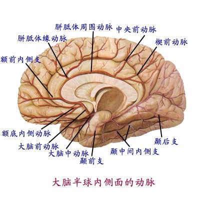 2)中央支:细长,深入大脑髓质,分布于内囊、基底核、间脑等。