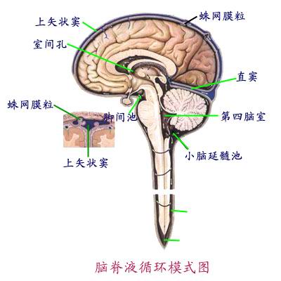 脑脊液是一种无色透明的液体,充满脑室和蛛网膜下隙,成人约100~140ml。
