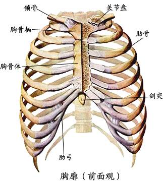 由12块胸椎、12对肋、1块胸骨构成