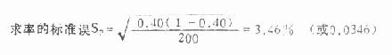 三、总体率的估计上面已经提到,计数资料可以计算相对数(率)。我们若由样本统计量P估计总体参数π,同样要考虑率的抽样误差,据数理统计研究结果,样本率的分布也近似正态分布,尤其当π比较靠近50%且样本较大时。于是对样本,百分率的可信区间可利用正态分布规律估计,公式是: 95%可信区间 P-1.96Sp<π 99%可信区间 P-2.58Sp<π (按正态分布,双侧尾部面积α=0.05时的u值为1.96,α=0.01时的u值为2.58,故用这两式求可信区间时不必查表找临界u值,记住这两数即可。) 例6.3 某医院收治200例急性菌痢患者,其中粪便细菌培养阳性者共80例,试估计菌痢细菌培养的总体阳性率95%与99%可信区间。 1.求阳性率 P=80/200×100%=40% (或0.40)