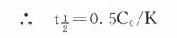 一、零级消除动力学当n=0时,-dC/dt=KC0=K(为了和一级动力学中消除速率常数区别,用K代k),将上式积分得: Ct=C0- Kt,C0为初始血药浓度,Ct为t时的血药浓度,以C为纵座标、t为横座标作图呈直线(图3-6),斜率为K,当Ct/C0=1/2时,即体内血浆浓度下降一半(或体内药量减少一半)时,t为药物消除半衰期(half-life time, t1/2)。 按公式1/2C0=C0-Kt1/2