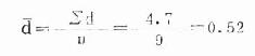 式中,0为差数年总体均数,因为假设处理前后或两法无差别,则其差数的均数应为0,d为一组成对数据之差d(简称差数)的均数,其计算公式同式(18.1);Sd为差数均数的标准误,sd为差数年的标准差,计算公式同式(18.3);n为对子数。 因计算的统计量是t,按表19-4所示关系作判断。 例19.5 应用某药治疗9例高血压病人,治疗前后舒张压如表19-5,试问用药前后舒张压有无变化? 表19-5 高血压病人用某药治疗前后的舒张压(kPa)