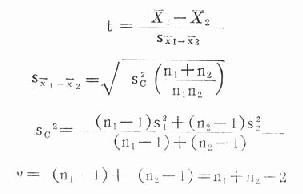 (二)t检验 可用于两样本含量n1、n2较小时,且要求两总体方差相等,即方差齐(homoscedasticity)。若被检验的两样本方差相差较大且差别有统计学意义则需用t'检验。