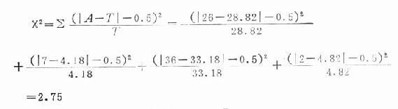 查x2界值表,x20.05(1)=3.84,故x2<x20.05(1),P>0.05. 按α=0.05水准,接受H0,两种疗效差异无统计学意义。 如果不采用校正公式,而用原基本公式,算得的结果x2=4.068,则结论就不同了。 如果观察资料的T<1或n<40时,四格表资料用上述校正法也不行,可参考预防医学专业用的医学统计学教材中的精确检验法直接计算概率以作判断。