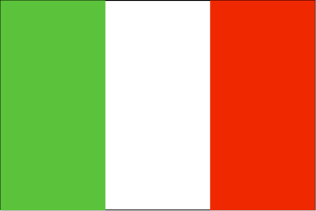 意大利国旗呈长方形,长与宽之比为3:2。从左至右由绿、白、红三个相等的垂直长方形组成。意大利原来国旗的颜色与法国国旗相同,1796年才把蓝色改为绿色。据记载,1796年拿破仑的意大利军团在征战中曾使用由拿破仑本人设计的绿、白、红三色旗。1946年意大利共和国建立,正式规定绿、白、红三色旗为共和国国旗,沿用至今。