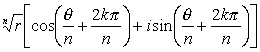 几何说明:复平面上与数r(cosθ+isinθ)的n次方根对应的点是一个正n边形的顶点,这些顶点在以原点为中心,以