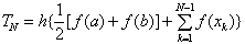 当区间[a,b]愈小,柯特斯公式所给出的结果愈精确.因此,当区间[a,b]较大时,为了避免采用n值较大的柯特斯公式,常把[a,b]N等分,对其中各个等份应用n值较小的柯特斯公式求积,然后再把各个等份的积分值相加,即得到区间[a,b]上的积分值,如下述的梯形公式(n=1)和辛卜生公式(n=2).