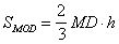 即 这里MD弓形弦长,CD平行于主轴,BC与抛物线相切, h为该平行四边形的高(即弓形拱高),特别, |