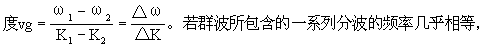 3.群速度:即波群传播能量的速度。由一系列波长和频率不同的分波叠加而成的合成波。若各个分波在介质中传播时的相速度各不相同,则群波的波形将随时间变化,其振幅最大部分的运动速度称为群波的群