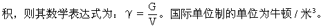 【比重】物体的重力和它的体积的比值,即单位体积的某种物质的重力,称作该物体的“比重”。用γ表示比重,G表示重力,V表示体