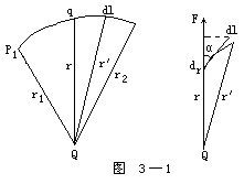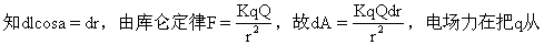 ,设q在位移前后与Q的距离分别为r和r′。场力
