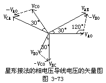 AO。图3-73表示相电压与线电压的矢量图,它表示了相电压和线电压之间方向和数量关系。由该图可以看出