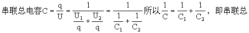 =C1+C2即并联总电容等于每个电容器电容之和。电容器并联时电容增大,串联时电容减小。实用中可根据需要而选用并联和串联。