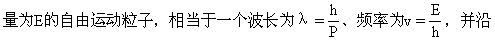 粒子运动方向传播的平面波(h为普朗克常数)。这种对微观粒子所具有波动性的描述,叫做物质波,即德布罗意波。但是不能因此而忽视光子和电子、原子等实物粒子之间的差别。例如,就速度方面,光在真空中的传播速度只有一个不变的速度,即光速c,而电子可以有小于光速的任何速度;在质量方面电子有静止质量,而光子的静止质量等于零。尽管如此,电子和光子之间仍然有着内在联系。当能量超过1.02MeV(兆电子伏特)的光子,在经过另一粒子(通常是原子核)附近时,就可转化为电子对。反之当电子和正电子相遇时,电子对将湮没而转化为两个光子,这一现象揭示了光子和电子有着深刻的联系,它也说明了物质存在形式之间的相互转化。德布罗意的假逆,通过能量和动量,把微观粒子的粒子性和波动性联系起来,即