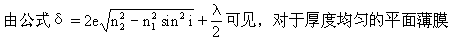 式中e为薄膜厚度,r为折射角。根据折射定律n1sini=n2sinr,因此