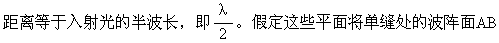 P点条纹的明暗完全决定于光程差BC的量值。菲涅耳在惠更斯—菲涅耳原理的基础上,提出了将波阵面分割成许多等面积的波带的方法。在单缝的例子中,可以作一些平行于AC的平面,使两相邻平面之间的