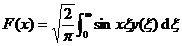 The function defined on the right side of the 2° equation ( 1 ) can be viewed as the Fourier sine transform of y(x) . If F(x) is segment-wise differentiable and exists when x > 0 , then equation ( 1 ) has a unique inversion formula:![]()