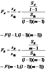 ( 1 ) Hypothesis H 0 : Under the condition, the effect of factor A (or B ) is not significant. ![]()