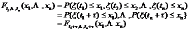L , t n Î T , random variables The joint distribution function of x ( t 1 ) , x ( t 2 ) , L , and x ( t n ) is