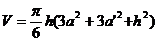 h is the maximum height of the section , b is the arch height of the bottom surface , 2 a is the chord length of the bottom surface , r is the radius of the bottom surface , and