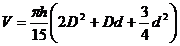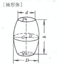d is the diameter of the upper and lower bottom circles , D is the diameter of the middle section , and h is the height |