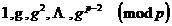 Let g be a primitive root modulo p , then
