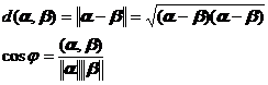 In the first paragraph of this section, the modulus (norm) of each vector α in the unitary space has been introduced . The distance between two "points" (ie vectors) α, β in the unitary space and any two vectors α , β The angle is defined as follows:![]()